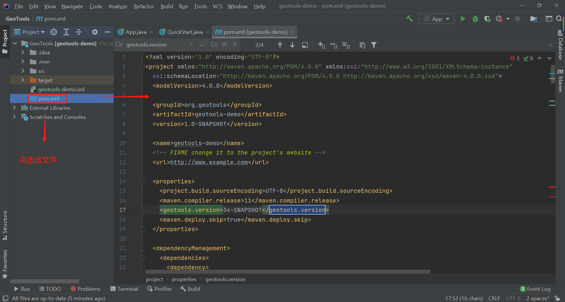 文件完整配置例子:https://docs.geotools.org/latest/userguide/_downloads/ae1db6d0f2cea56845a2d6816b10bb9a/pom.xml