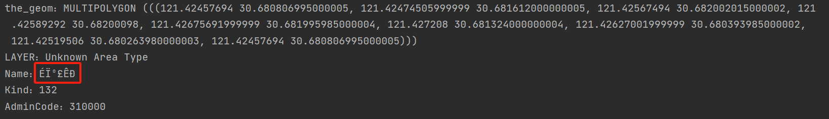 如在本例中读取省级行政区时,行政区名称Name字段出现了中文乱码问题。 经过修改后中文正常显示如下。