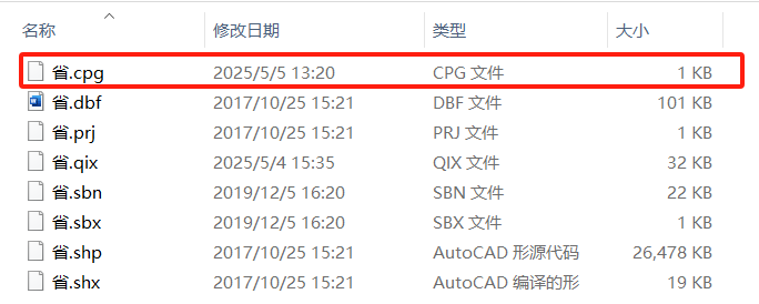 如果没有也可以新建一个文本文件,将后缀改为.cpg,然后填入正确的字符集。在读取Shp文件前,将存储器参数字符集修改为目标字符集即可。