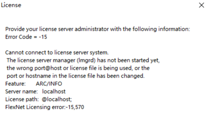 之前安装的时候许可管理器内容填的是localhost,当某个时切换其他网络ArcMap便报错许可无法连接。