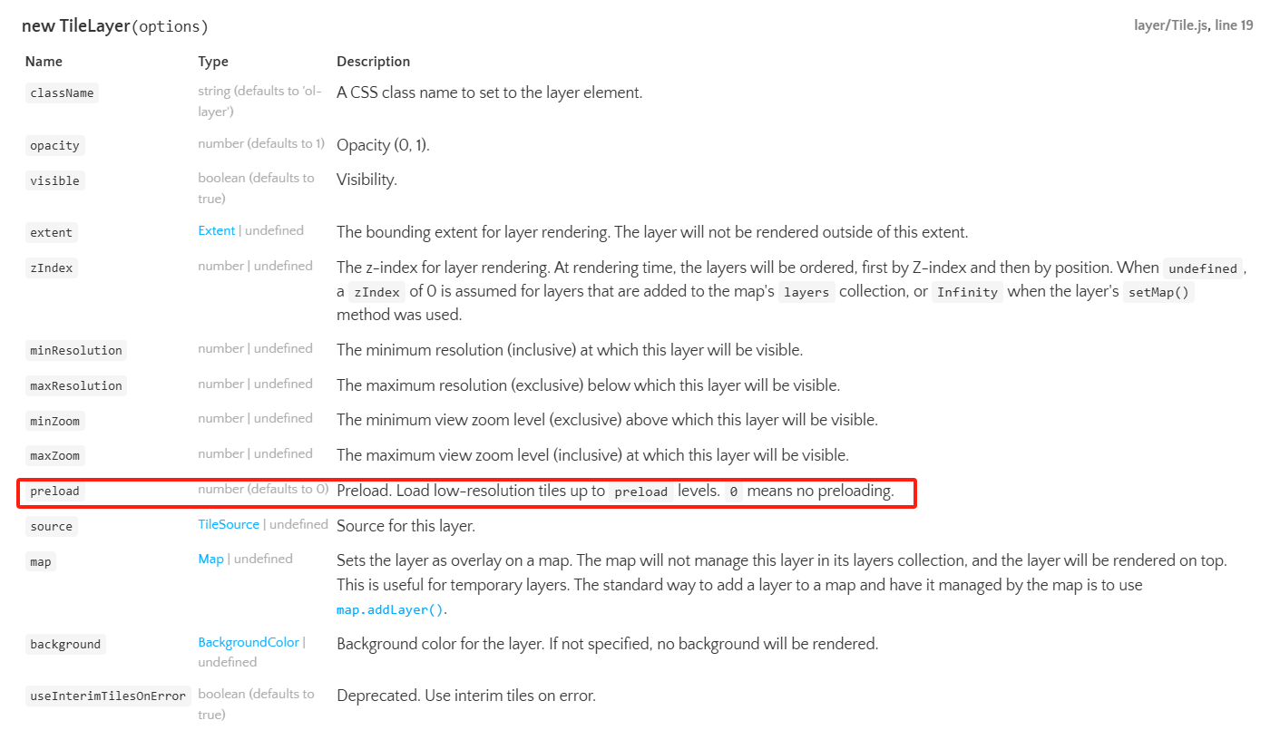 TileLayer对象属性preload用于控制切片图层预加载。preload属性为Number类型,默认值是0。设置preload值用于加载低分辨率切片,该值代表最高预加载级别,0表示没有预加载。