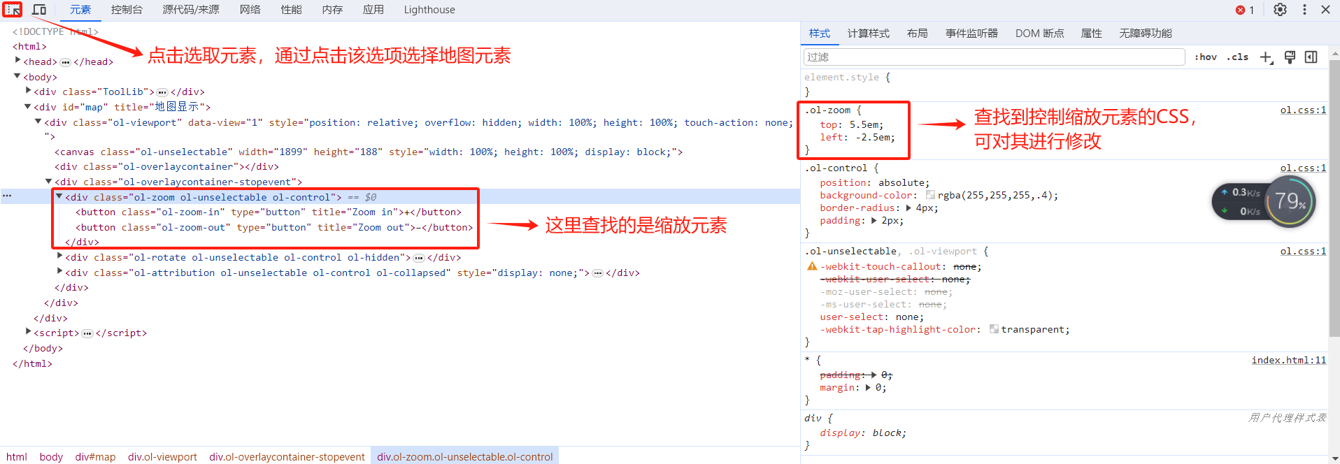 地图控件通过HTML插入到Map页面,可以利用CSS调整地图控件样式。