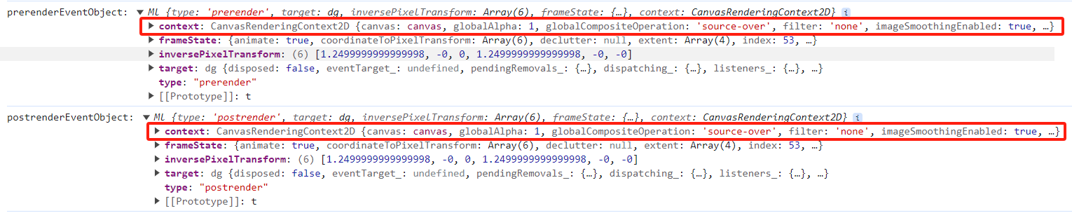 canvas画布上下文对象。当事件由地图(map)触发时不可用,对于Canvas 2D图层,context将是2D渲染上下文;对于WebGL图层,context将是WebGL上下文